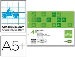 Recambio liderpapel A5 100 hojas 75gr cuadro 3mm con margen 6 taladros