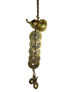 Colgador Feng Shui con campanitas, calabaza y monedas chinas