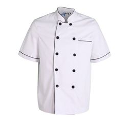 - Tipo 4: Casaca cocinero con botones de seguridad y estampado de letras en negro, combinando protección y estilo en la cocina.