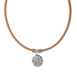 WN253X Collar Plata de Palo mujer de cuero colección ENSO con colgante círculo de plata 925 y un punto de bronce con circonita