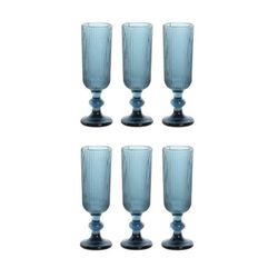Set de 6 copas flauta, 6 x 6 x 18,5 cm, de cristal en azul | Colección Lines