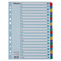 Abecedario Multitaladro Esselte. DIN A4. Cartulina índice color, pestañas reforzadas. A-Z Mylar, multicolor