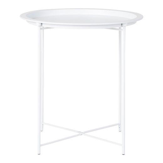 Mesa auxiliar, 40 x 40 x 55 cm, de madera y acero en blanco | Colección Vita