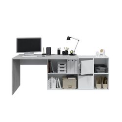 Escritorio con buc de madera blanco/gris, 136x139x74 cm | OFFICE