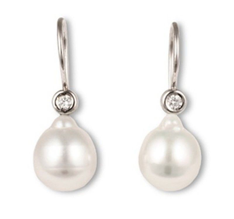 Elegantes pendientes colgantes en oro blanco con perla australiana de gran tamaño y brillo natural, rematados con un pequeño diamante en la parte superior. Diseño sofisticado y clásico, perfectos para ocasiones especiales o como complemento diario de lujo. Ideal para mujeres que buscan joyería de alta calidad y estilo atemporal.