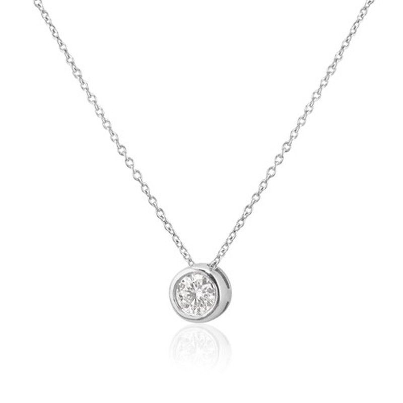 Colgante elegante para mujer en oro blanco con un brillante incrustado en su centro. Diseño discreto y sofisticado, ideal para complementar cualquier atuendo. Cadena fina y acabado pulido que resalta la belleza del diamante. Perfecto para ocasiones especiales o uso diario.