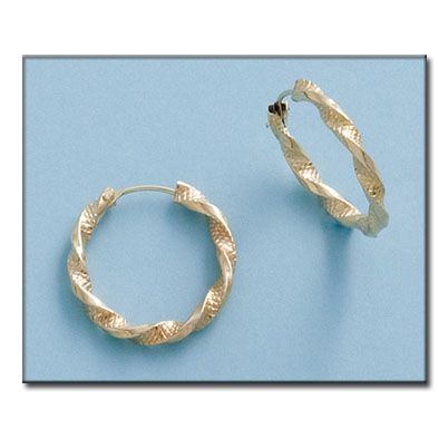 Elegantes pendientes tipo aro para mujer en oro de 18K con diseño rizado y textura greca. Su acabado brillante y forma circular los convierten en un accesorio sofisticado y versátil para cualquier ocasión. Ideal para complementar looks formales o diarios con un toque de lujo.