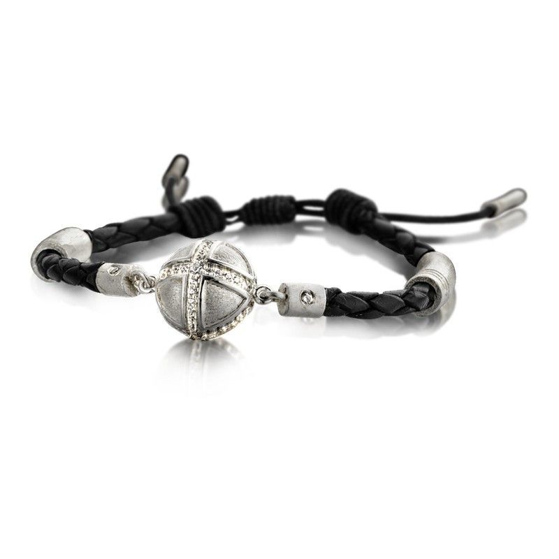 Pulsera elegante con cuerda negra trenzada y elemento central esférico de plata con detalles grabados. Ideal para adultos que buscan un accesorio sofisticado y versátil. Ajustable mediante nudos, perfecta para combinar con cualquier estilo. Calidad duradera y diseño moderno.