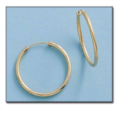 33-A302 Pendientes Aros superficie pulida en Oro de 18 Kl. Diámetro interior de 25mm y grosor 2mm.