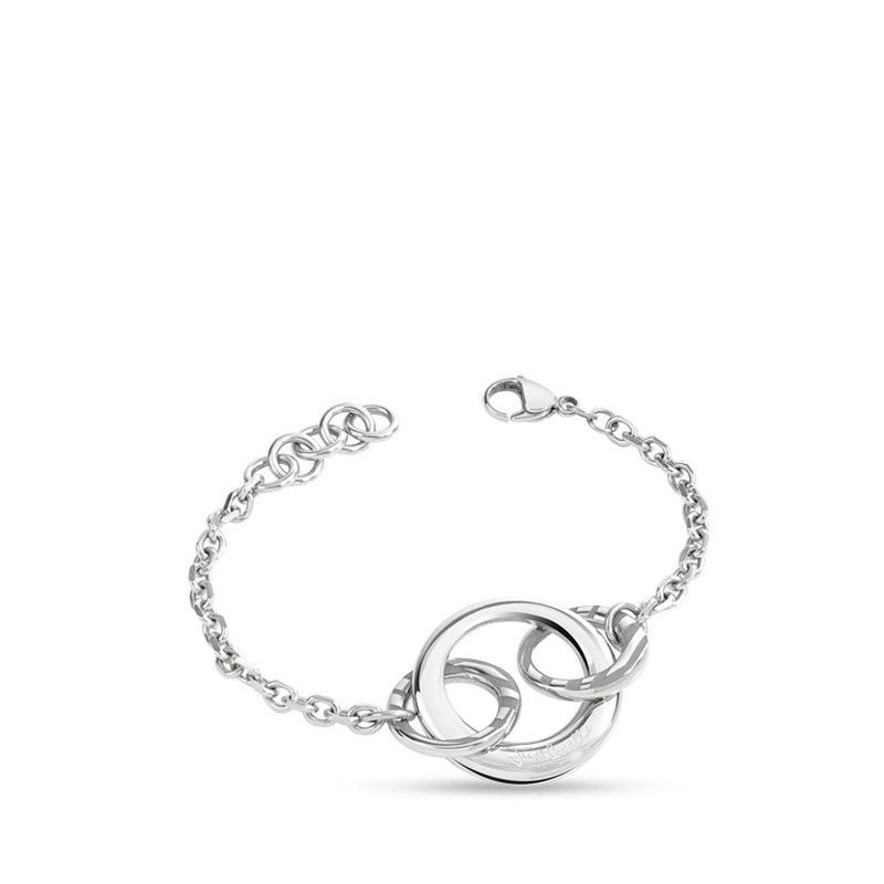 Pulsera CAVALLI con tres anillas centrales entrelazadas, fabricada en acero inoxidable de alta calidad. Diseño moderno y elegante, ideal para adultos que buscan un accesorio sofisticado y versátil. Perfecta para combinar con cualquier look, desde casual hasta formal. Cierre de mosquetón seguro y cómodo. Un toque de estilo para tu muñeca.