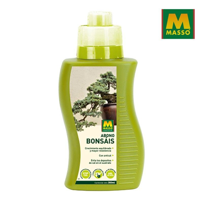 Abono especial para bonsáis de 350 ml de la marca MASSO. Fórmula con antical que promueve un crecimiento equilibrado y mayor resistencia, evitando depósitos de cal en el sustrato. Ideal para cuidar y nutrir tus bonsáis con precisión. Aplicación fácil gracias al dosificador incorporado. Para amantes del jardín y la jardinería.