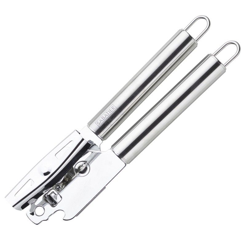 Abrelatas Sabatier Professional de acero inoxidable, diseñado para un uso cómodo y seguro en la cocina. Su estructura robusta y acabado pulido garantizan durabilidad y facilidad de limpieza. Ideal para abrir latas de conservas, salsas y alimentos enlatados con precisión y sin esfuerzo. Perfecto para uso diario en hogares y profesionales.