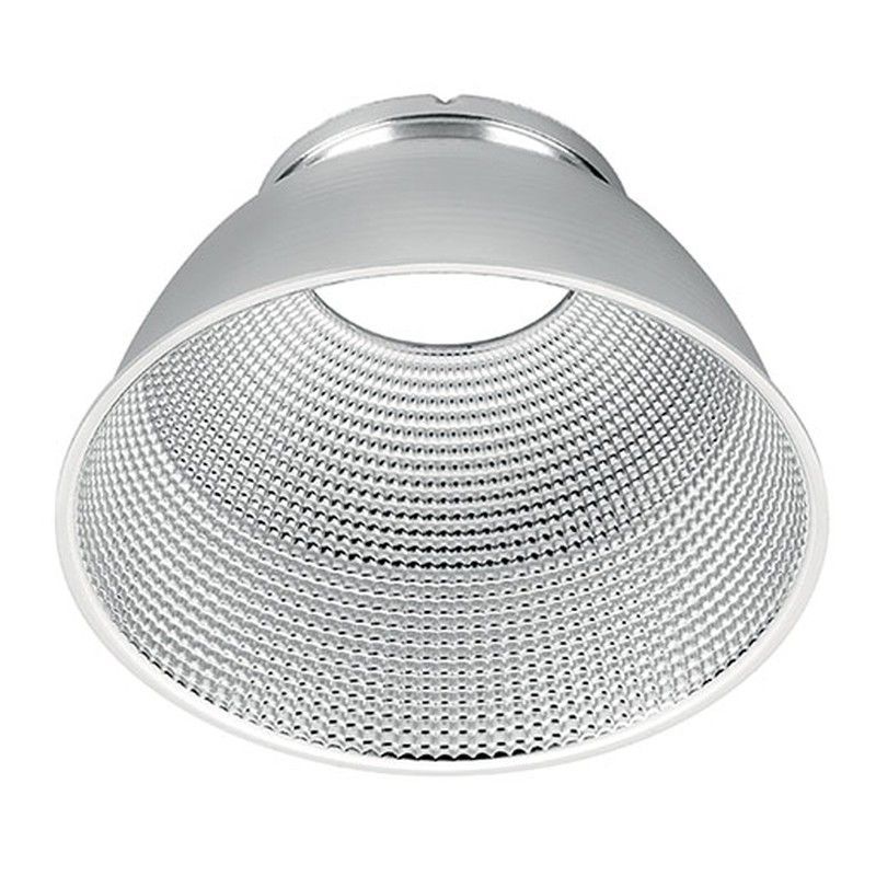 Reflector G2 de 100mm con ángulo de 90°, fabricado en acero inoxidable de alta calidad. Diseño cónico con superficie interna texturizada para una distribución óptima de la luz. Ideal para focos y lámparas de iluminación interior o exterior. Acabado plateado brillante y resistente a la corrosión. Perfecto para proyectos de iluminación profesional o