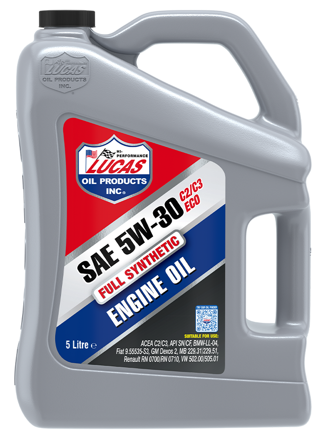 Aceite sintético Lucas Oil SAE 5W-30 C2/C3 en envase de 5 litros, ideal para motores de vehículos que requieren un lubricante de alta calidad. Fórmula 100% sintética para mayor protección y rendimiento. Perfecto para mantenimiento regular y condiciones extremas. Incluye certificaciones API y ACEA para garantizar compatibilidad y eficiencia.