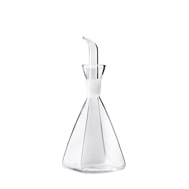 Aceitera de cristal piramidal de 0,250 L de la marca Ibili, ideal para cocinar y servir aceite de oliva o vinagre con estilo. Fabricada en vidrio transparente de alta calidad, presenta un diseño geométrico con facetas y pico curvado para un vertido preciso. Perfecta para tu cocina o mesa de comedor, combina funcionalidad y elegancia.