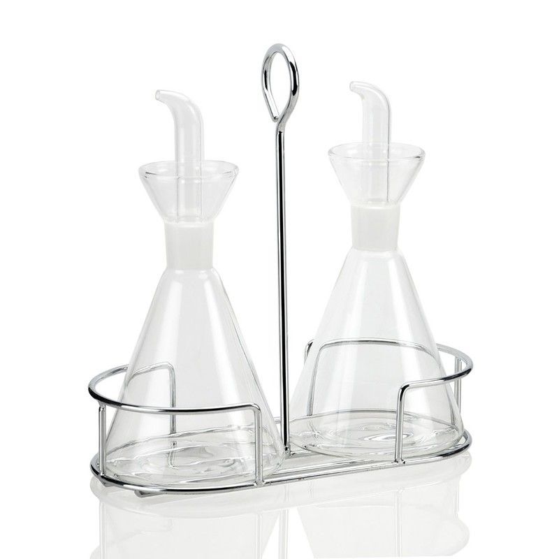 Aceitera y vinagrera con soporte de vidrio y cromo, 20x10x20cm | Matraz