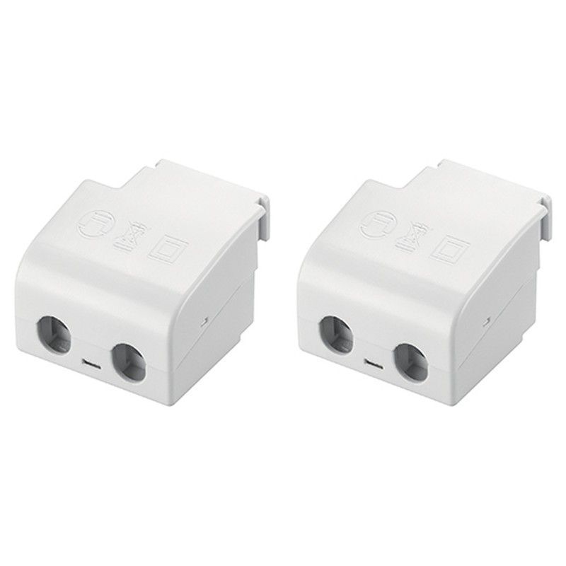 Conectores eléctricos tipo clip-on blancos, ideales para instalaciones de iluminación en casa o jardín. Fabricados en plástico resistente, permiten una conexión rápida y segura de cables. Fáciles de instalar y compatibles con sistemas de iluminación LED o incandescente. Perfectos para proyectos de iluminación interior y exterior.