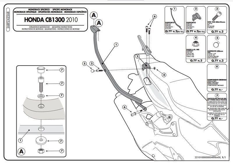 Adaptador de portaequipajes para Honda CB1300 S (2010-2015), fabricado en acero inoxidable y plástico resistente. Diseño curvo y ajuste preciso para una instalación segura y funcional. Incluye todos los componentes necesarios para montaje con indicaciones de torque. Ideal para motociclistas que buscan transporte seguro de equipaje sin comprometer l