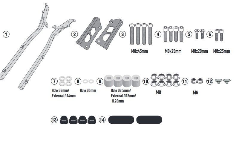 Adaptador para portaequipajes trasero compatible con Street Triple 765 (modelos 2017-2019 y 2020). Fabricado en metal de alta resistencia, incluye todos los componentes necesarios para una instalación segura y precisa. Ideal para motociclistas que buscan una solución robusta y fiable para transportar equipaje. Incluye brazos, placas, tornillos, ara