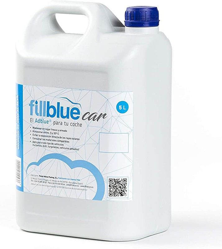 Adblue fíllblue car en envase de 5 litros, ideal para vehículos diésel con sistema de reducción de emisiones. Producto esencial para mantener el rendimiento del motor y cumplir con normativas ambientales. Envase práctico con tapa azul y etiqueta informativa. Compatible con todos los tipos de vehículos diésel.