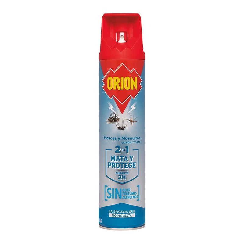 Aerosol Orion Sin Olor de 600 ml, ideal para eliminar moscas y mosquitos de forma eficaz y sin molestias. Con fórmula 2 en 1 que mata y protege durante 2 horas, sin olores ni perfumes. Perfecto para uso en casa y jardín, sin irritantes ni alérgenos. Eficacia probada, sin molestias.