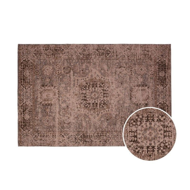 Alfombra Camlin de 140 x 200 cm con diseño vintage desgastado, ideal para salones, dormitorios o espacios con estilo bohemio. Fabricada en poliéster y algodón, ofrece una textura suave y duradera. Su estampado geométrico y floral en tonos marrón y gris aporta calidez y elegancia a cualquier ambiente. Perfecta para decorar con un toque retro y sofis