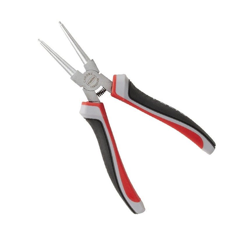 Alicates RATIO serie 6000 con puntas rectas y afiladas, ideales para trabajos de precisión en bricolaje y reparaciones. Fabricados en acero inoxidable de alta calidad con manijas ergonómicas de goma y plástico para un agarre seguro y cómodo. Incluyen resorte para facilitar la apertura y cierre. Perfectos para electricistas, mecánicos y entusiastas