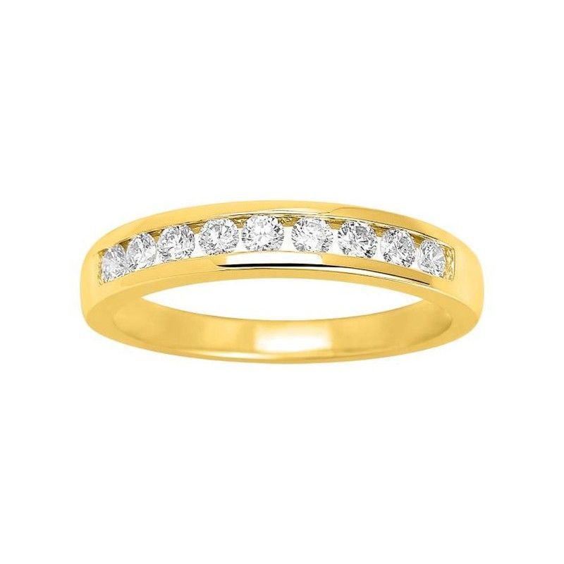 Anillo semi-alianza en oro de 18 quilates con nueve diamantes de 0,43 ct, ideal para mujeres que buscan elegancia y sofisticación. Diseño clásico y atemporal, perfecto como complemento diario o para ocasiones especiales. Calidad premium, acabado pulido y brillo excepcional. Un símbolo de estilo y buen gusto.