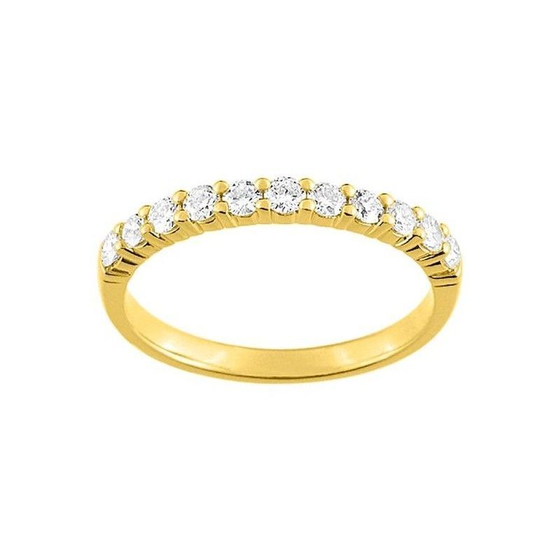 Anillo semi-alianza en oro de 18 quilates con 0,40 ct de diamantes incrustados en una fila continua. Diseño elegante y sofisticado, ideal para mujeres que buscan un toque de lujo en su joyería diaria. Perfecto como anillo de compromiso o para combinar con otras piezas. Calidad premium, acabado pulido y brillo excepcional.