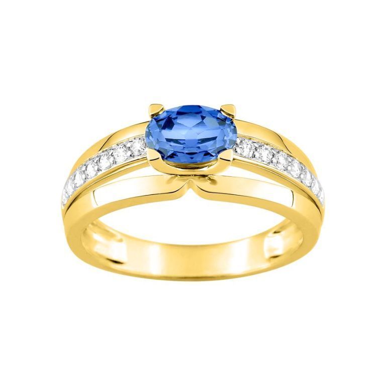 Elegante anillo de oro de 18 quilates con zafiro central ovalado y diamantes incrustados en los laterales. Diseño sofisticado y clásico, ideal para ocasiones especiales. Fabricado con materiales de alta calidad para un brillo duradero y un ajuste perfecto. Un accesorio atemporal para mujeres que buscan elegancia y distinción.