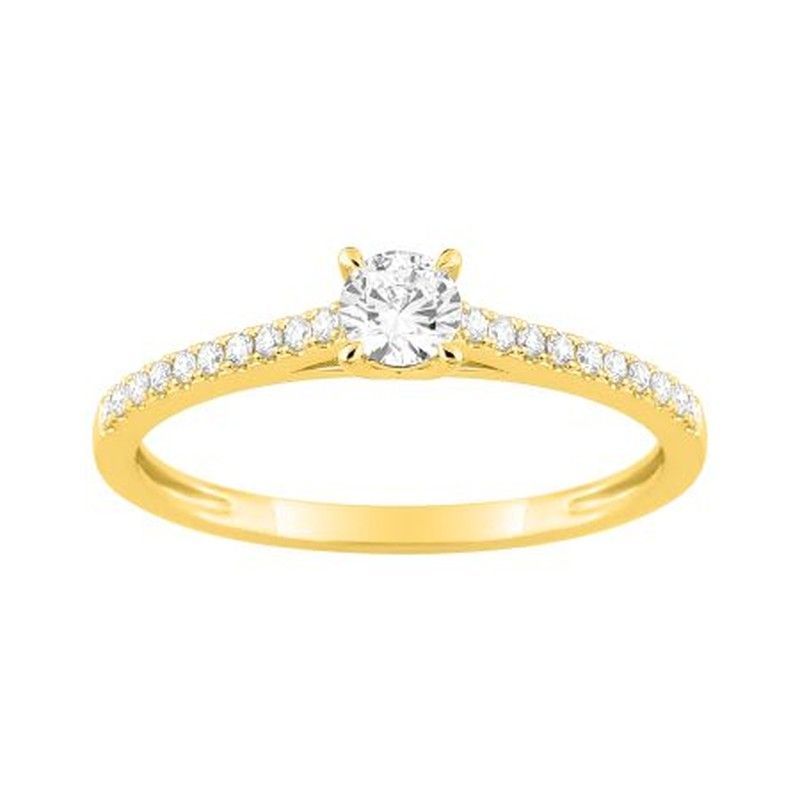 Anillo de oro 9 quilates con diamantes de laboratorio de 0,32 ct. Diseño clásico con diamante central y banda pavé. Ideal para compromiso o como joya de ocasión. Elegancia y brillo garantizados para mujeres que buscan sofisticación y calidad.