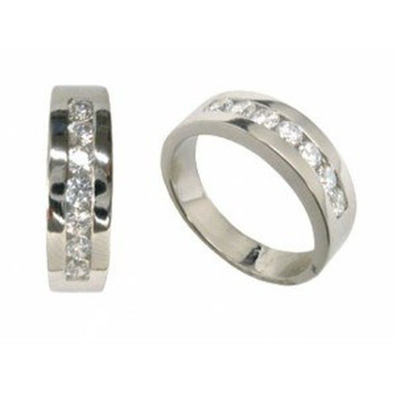 Anillo de oro blanco de 18 quilates con 0.56 quilates de brillantes incrustados en línea central. Diseño elegante y sofisticado, ideal para ocasiones especiales o como joya de compromiso. Acabado pulido que resalta la luz y brillo de los diamantes. Perfecto para adultos que buscan una pieza de joyería de alta calidad y estilo clásico.