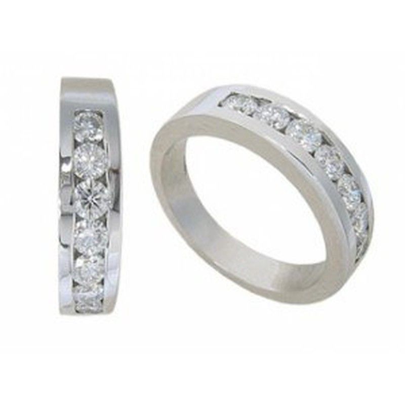 Anillo de oro blanco de 18 quilates con una fila de brillantes incrustados en la bandaDiseño elegante y sofisticadoBrillantes de 0.56 quilates distribuidos uniformemente a lo largo del anilloAcabado pulido que refleja la luz