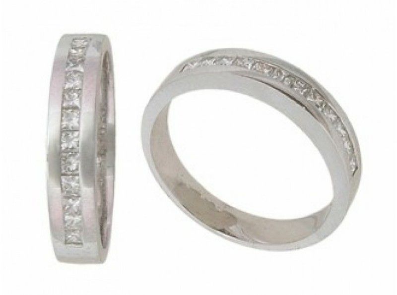 Anillo de oro blanco de 18 quilates con incrustaciones de diamantes en la bandaDiamantes dispuestos en línea continua a lo largo del borde superior del anilloDiseño elegante y sofisticado ideal para ocasiones especiales o como joya de compromiso