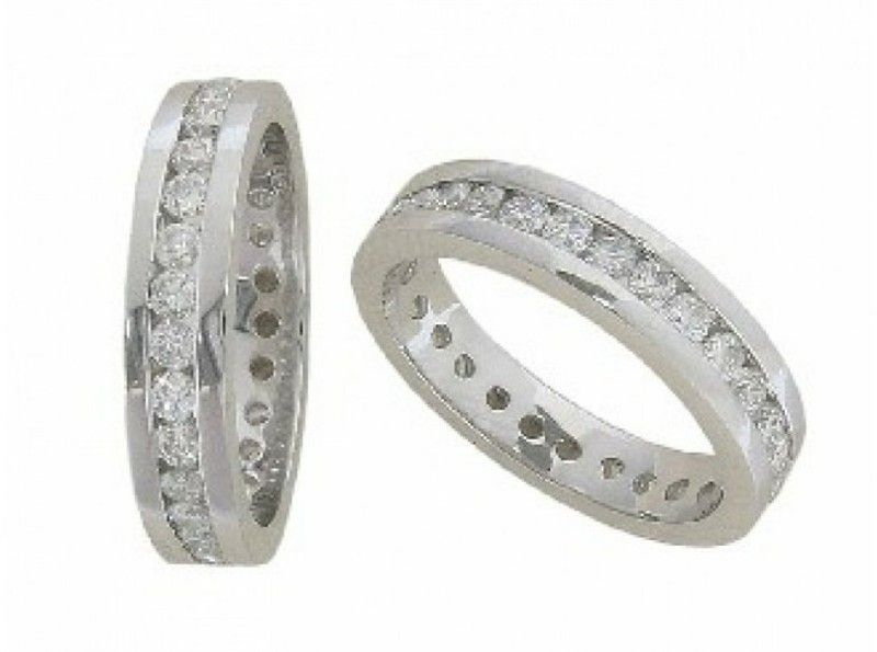Anillo de oro blanco de 18 quilates con diamantes brillantes de 1.22 a 1.39 quilates, ideal para ocasiones especiales o como joya de compromiso. Diseño elegante con diamantes incrustados en toda la circunferencia, acabado pulido y detalles decorativos en el interior. Joya de alta calidad para adultos que buscan sofisticación y brillo.