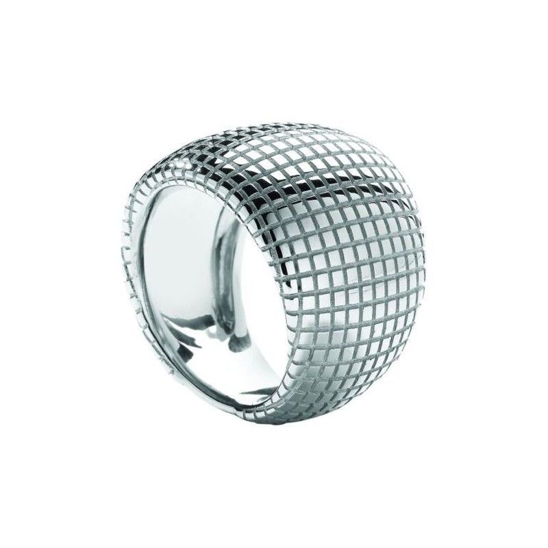 Anillo de oro blanco 18kts con diseño de rejilla pulida, ideal para adultos que buscan un accesorio sofisticado y moderno. Su acabado brillante y forma redondeada lo convierten en una pieza versátil para combinaciones elegantes. Fabricado en oro blanco de alta calidad, perfecto para ocasiones especiales o uso diario con estilo.
