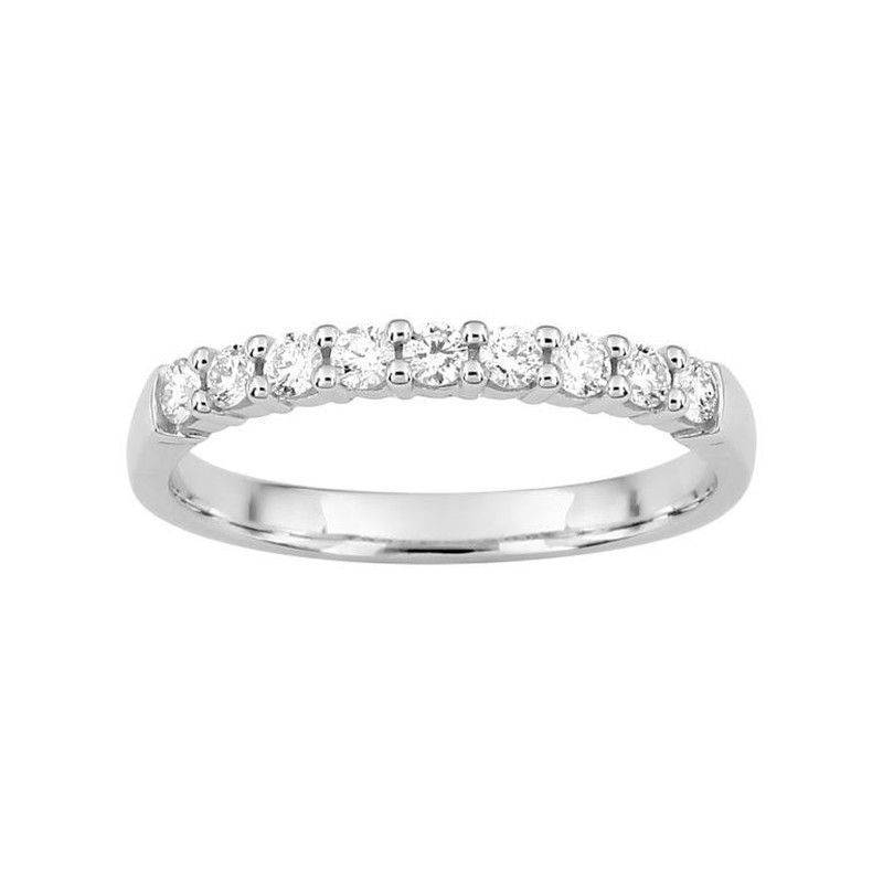Anillo semi-alianza en oro blanco de 18 quilates con 0,30 ct de diamantes incrustados en una fila elegante. Diseño sofisticado y brillante, ideal para mujeres que buscan un toque de lujo en su joyería diaria. Perfecto como complemento para ocasiones especiales o como pieza atemporal para el día a día. Calidad premium y acabado pulido que resalta la