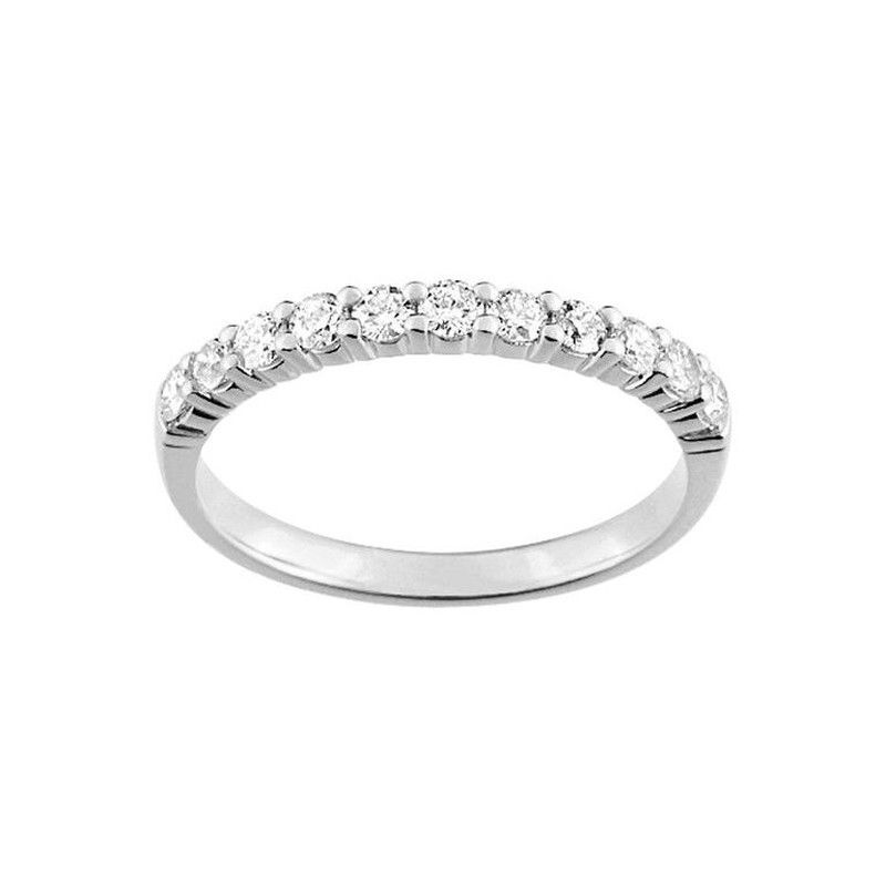 Anillo semi-alianza en oro blanco de 18 quilates con 0,40 ct de diamantes incrustados en toda la circunferencia superior. Diseño elegante y sofisticado, ideal para mujeres que buscan un toque de lujo en su joyería diaria. Perfecto como complemento para ocasiones especiales o como pieza atemporal para el día a día. Calidad premium y acabado pulido q