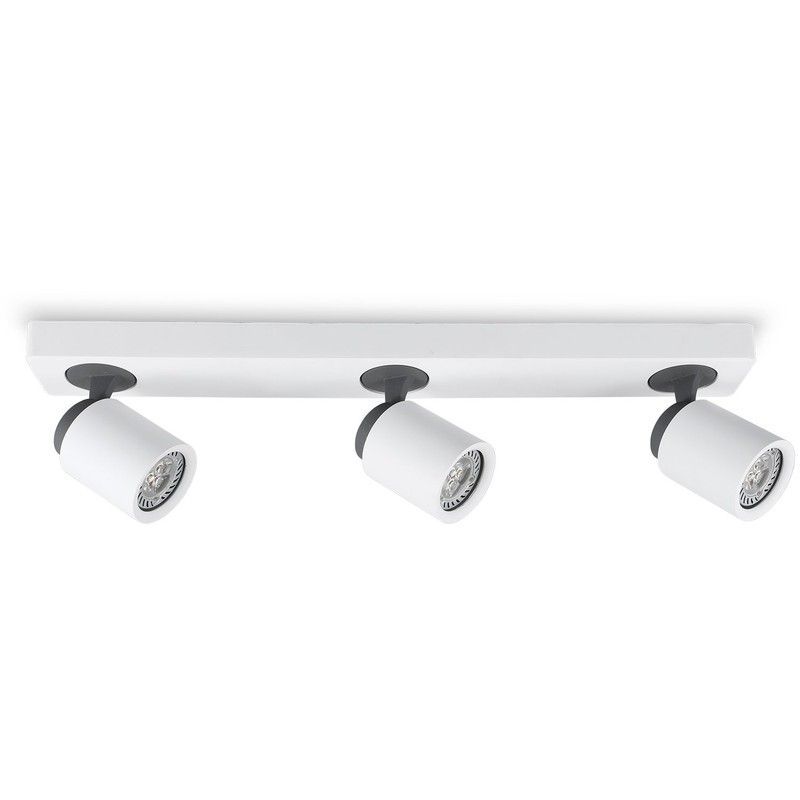 Aplique de techo MX3013-WH Lumiere con tres focos LED orientables, ideal para iluminar espacios como salones, cocinas o pasillos. Diseño moderno en blanco y negro, fabricado en metal y plástico de alta calidad. Fácil instalación y ajuste de ángulo para una iluminación direccional precisa. Perfecto para interiores contemporáneos.