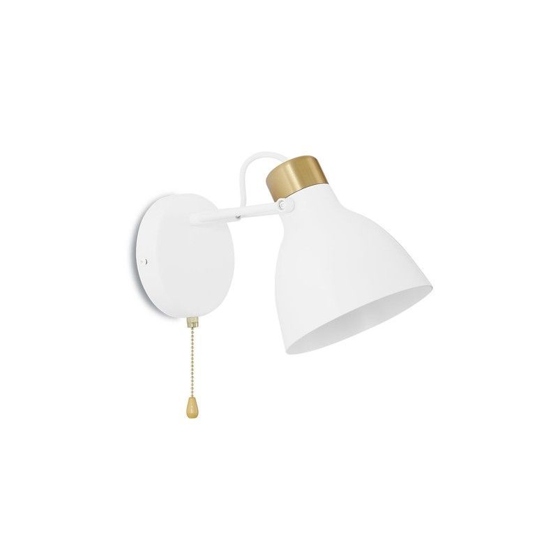 Aplique de pared MB6129-WHG Lumiere con acabado blanco y detalles dorados, ideal para iluminar espacios como dormitorios, pasillos o salas. Fabricado en metal, ofrece un diseño moderno y minimalista con interruptor de cadena para un control fácil. Perfecto para decoraciones contemporáneas y ambientes elegantes.