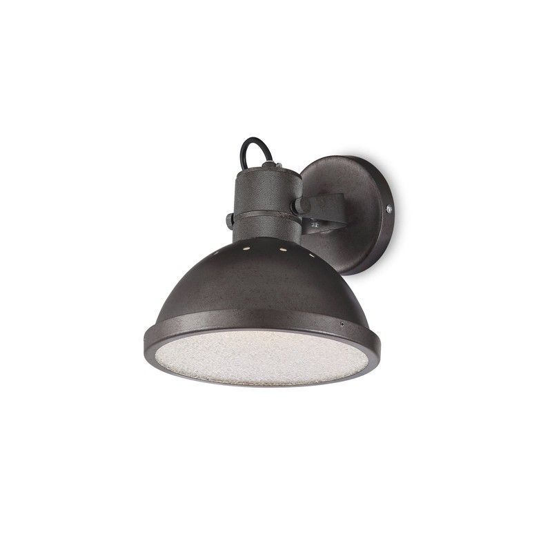 Aplique de pared MB9139-RT Lumiere con diseño industrial en acabado negro mate. Fabricado en metal, ideal para iluminar espacios exteriores o interiores con estilo rústico. Su difusor blanco texturizado proporciona una luz cálida y uniforme. Perfecto para patios, pasillos o cocinas con toque vintage.