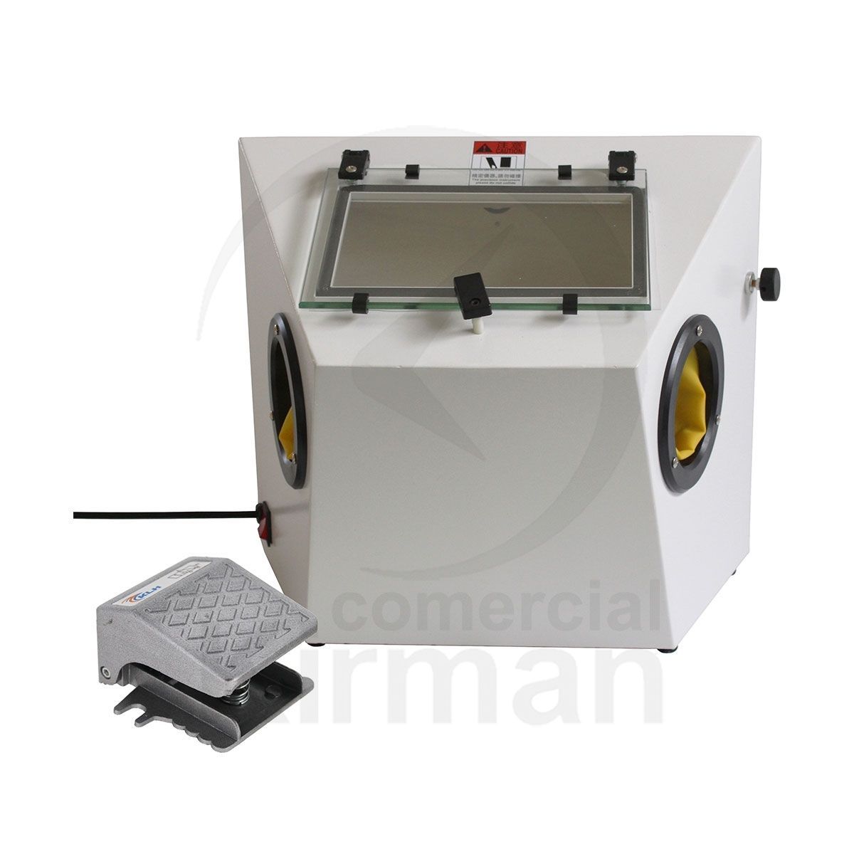 Arenadora metálica modelo 16131 con pedal, ideal para trabajos de acabado en metales y madera. Diseño compacto y robusto en color blanco con detalles negros y amarillos. Incluye pedal metálico antideslizante para mayor comodidad y control. Perfecta para talleres y profesionales que buscan precisión y eficiencia en el lijado.