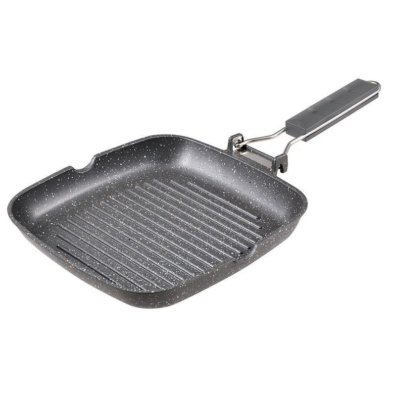 Asador Orion de aluminio forjado de 24x24 cm, ideal para cocinar a la parrilla en casa. Con superficie antiadherente y rejilla para marcar los alimentos, ofrece una cocción uniforme y fácil limpieza. Su manija metálica con sistema de bloqueo garantiza seguridad y comodidad. Perfecto para carnes, pescados y vegetales.
