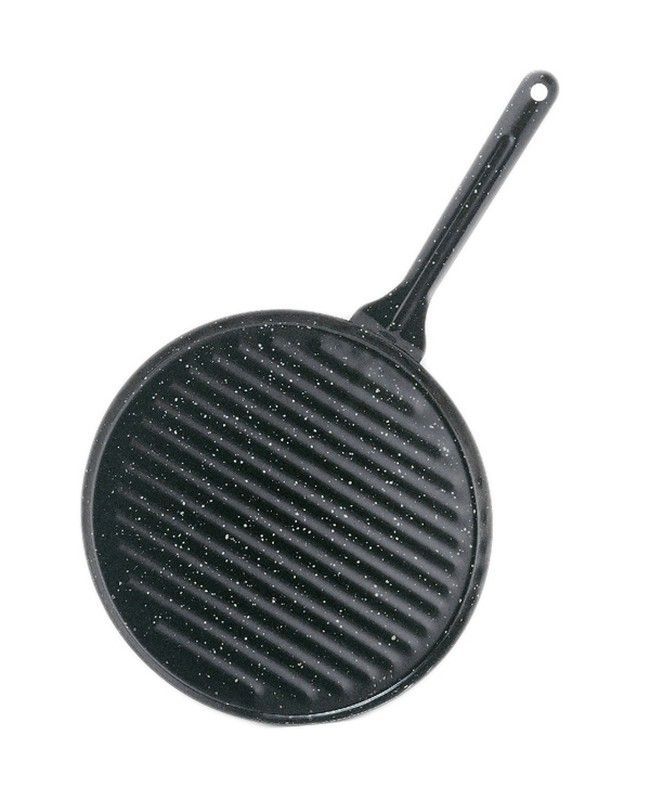 Asadora esmaltada redonda de 26 cm, ideal para cocinar a la parrilla en casa. Fabricada en metal resistente con superficie antiadherente y diseño de surcos diagonales para marcar los alimentos. Perfecta para carne, pescado y vegetales. Incluye mango largo para mayor seguridad y facilidad de uso. Ideal para cocinar al aire libre o en la cocina.