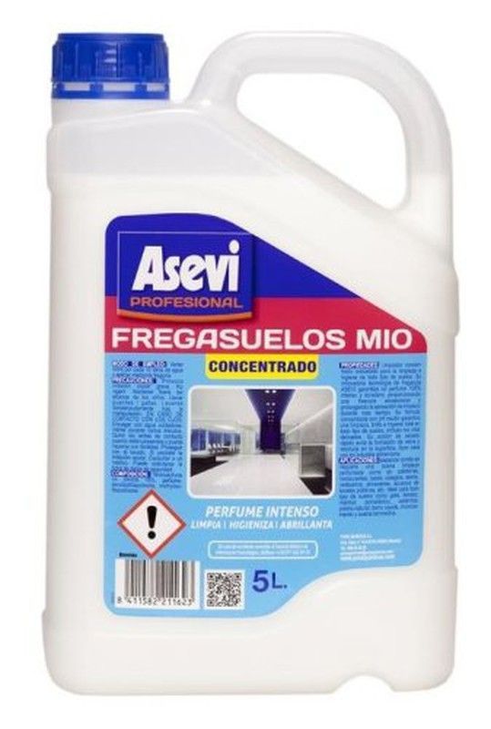 Fregasuelos Asevi Mio Concentrado de 5L, ideal para hogares y espacios comerciales. Con perfume intenso, limpia, higieniza y abrillanta superficies. Fórmula concentrada para mayor eficacia y ahorro. Envase práctico con asa para fácil manejo. Perfecto para mantener tus suelos impecables y con aroma agradable.