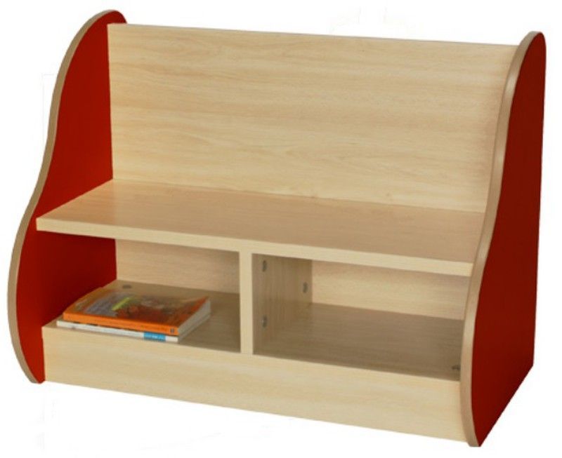 Banco para niños con diseño curvo y acabado en madera clara y laterales rojos. Incluye dos compartimentos abiertos para almacenar libros, juguetes o materiales escolares. Ideal para aulas, guarderías o espacios infantiles. Fabricado en madera de calidad, resistente y seguro para niños. Combina funcionalidad y estilo en un solo mueble.
