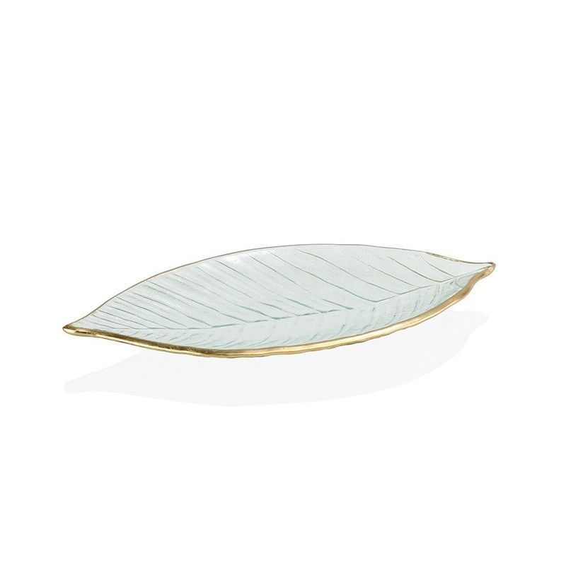 | Nombre | Bandeja decorativa, 29,5 x 13 x 2,5 cm, de vidrio en transparente y dorado | Colección Hojas |