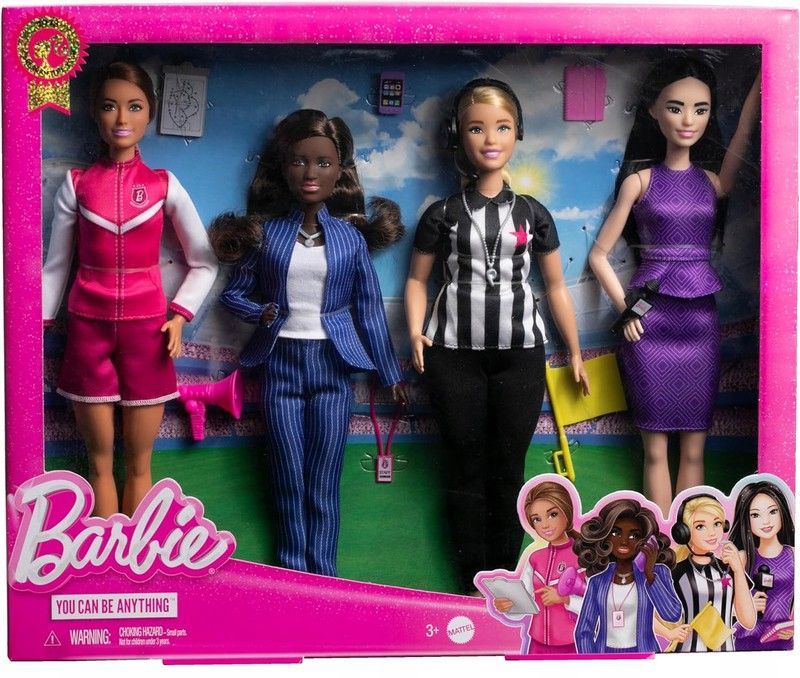 Barbie Sport Team: Pack de 4 muñecas con uniformes deportivos para niños, ideal para juegos y imaginación.
