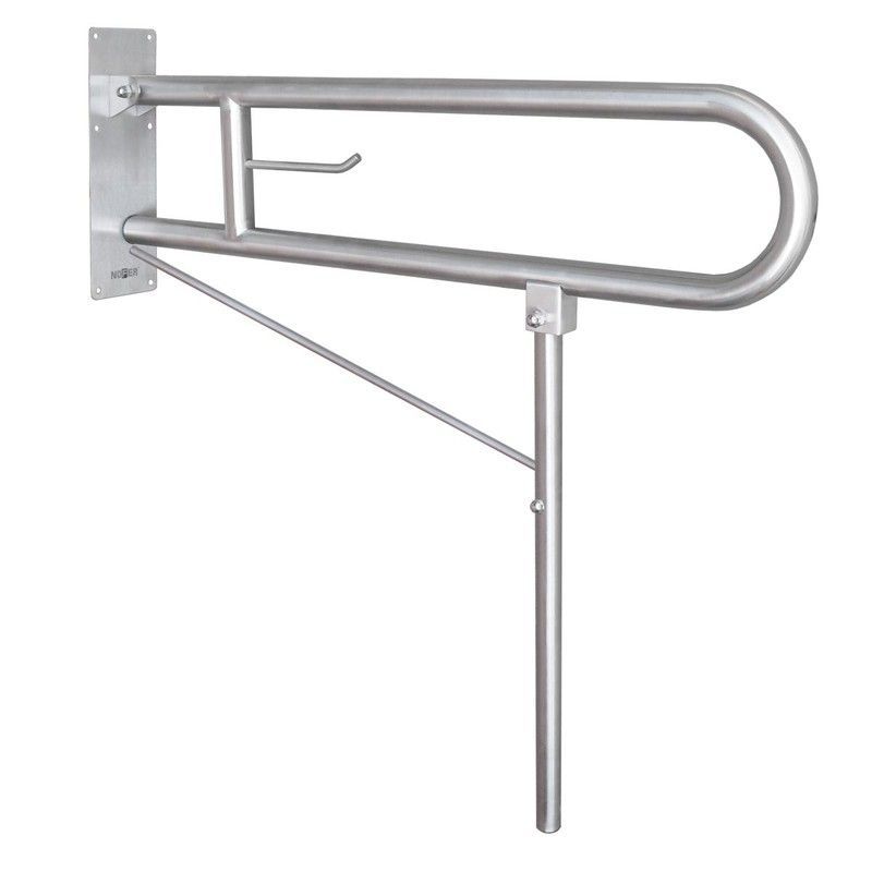 Barra abatible de acero inoxidable de 80 cm con apoyo en suelo, acabado satinado. Ideal para baños, duchas o espacios con necesidad de apoyo. Diseño seguro y resistente, fácil de instalar y usar. Perfecta para personas con movilidad reducida o mayores que necesitan ayuda para levantarse o mantener el equilibrio.