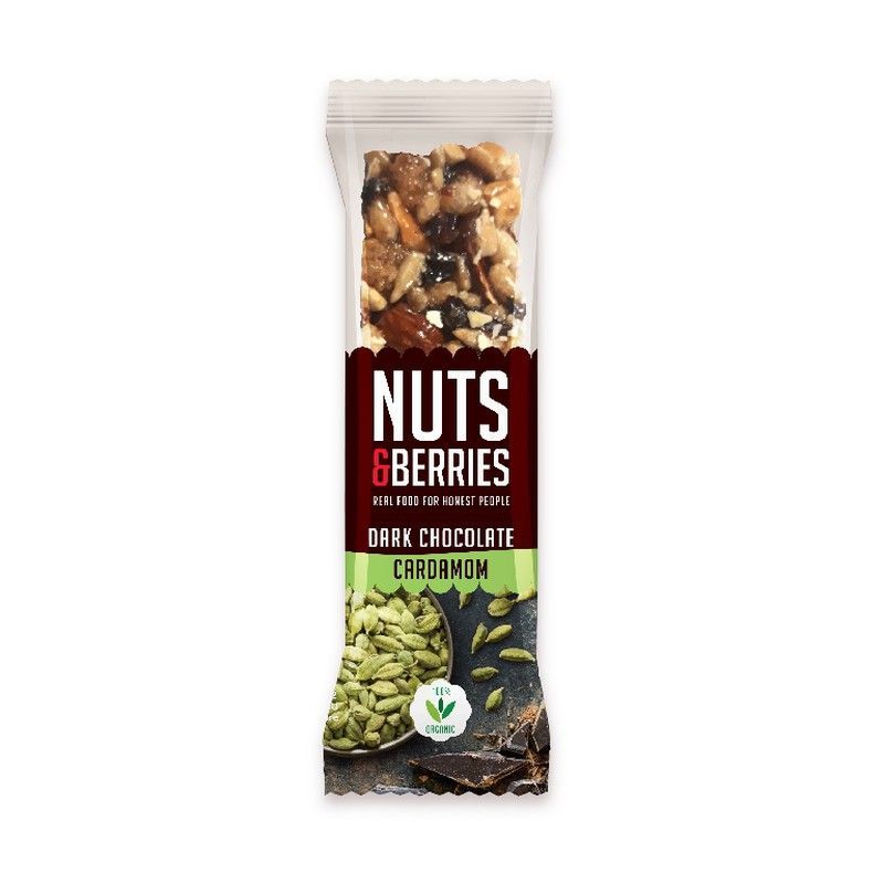 Barrita chocolate negro-cardamomo nuts&berries 40g bio ecológico